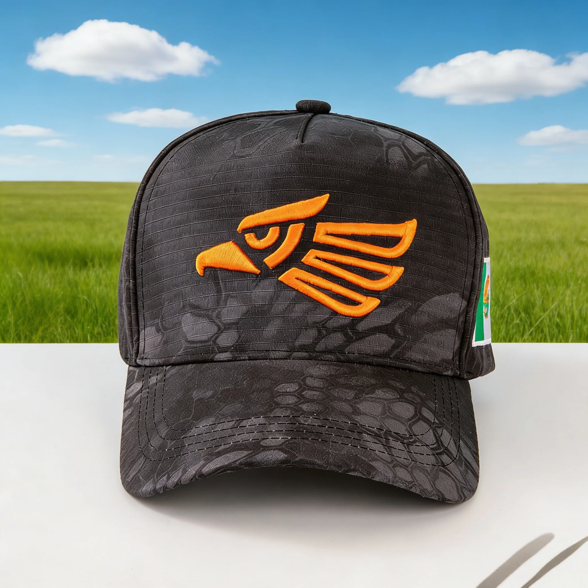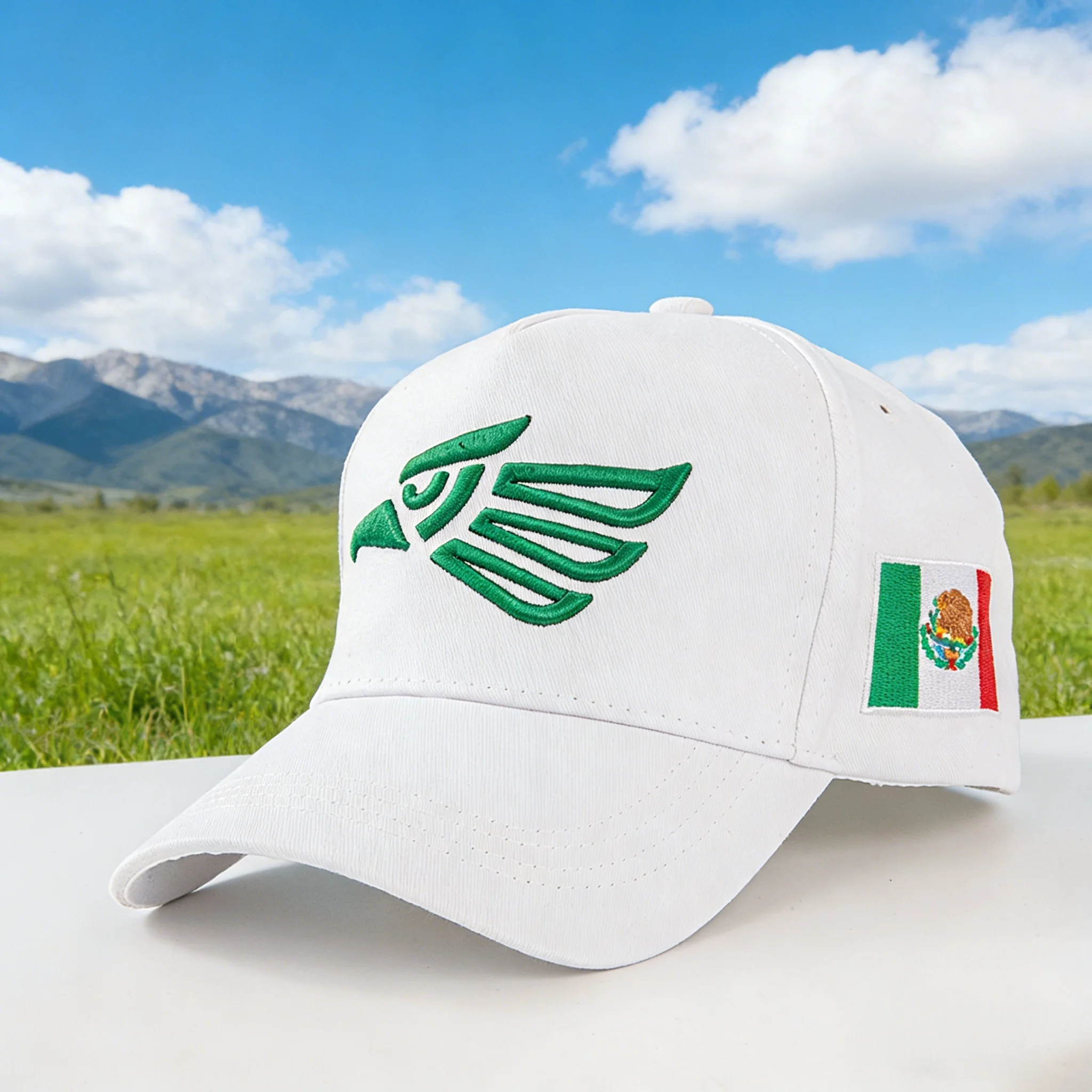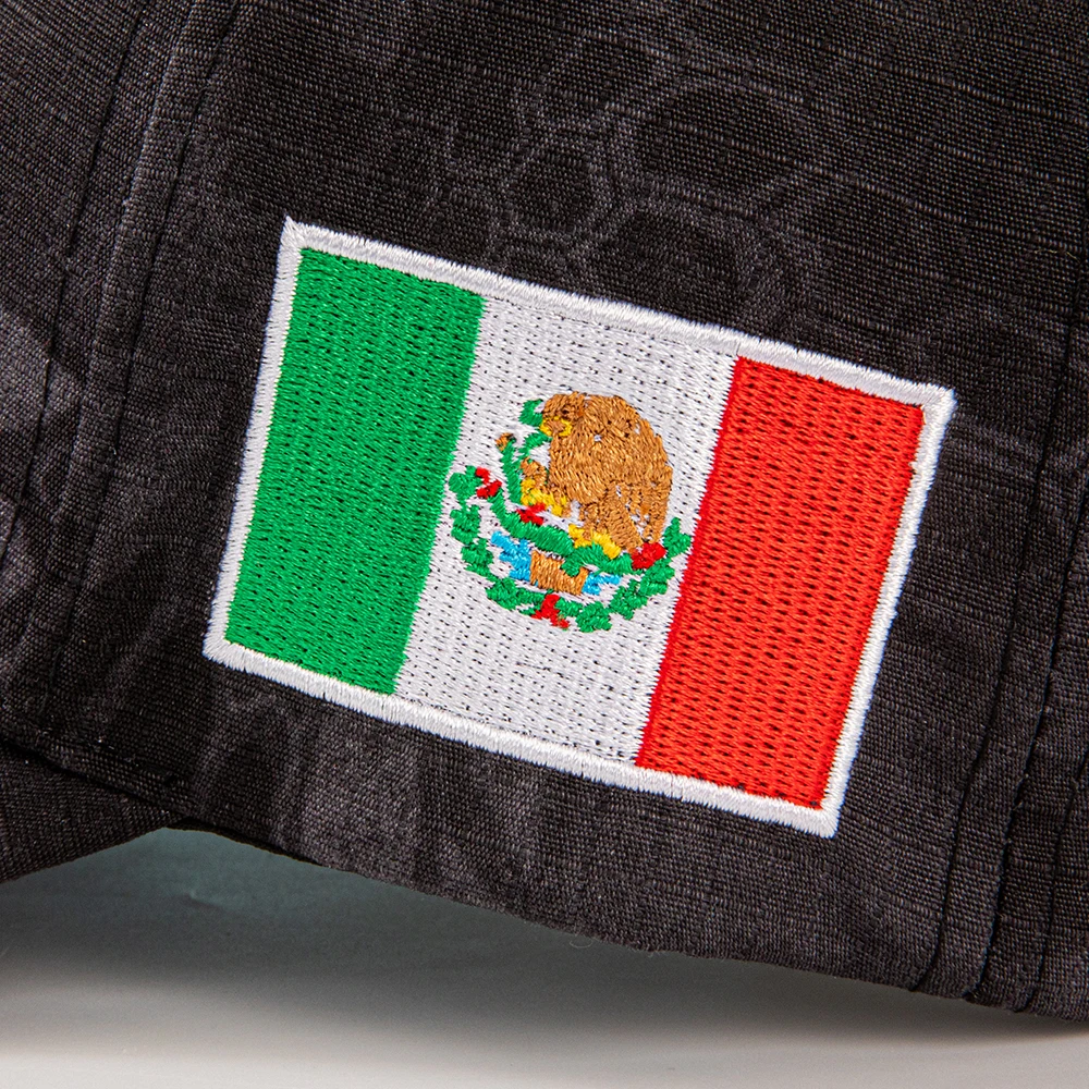 Camouflage baseball caps with eagle embroidery and Mexican flag patches - the perfect outdoor adventure, blending nature-inspire