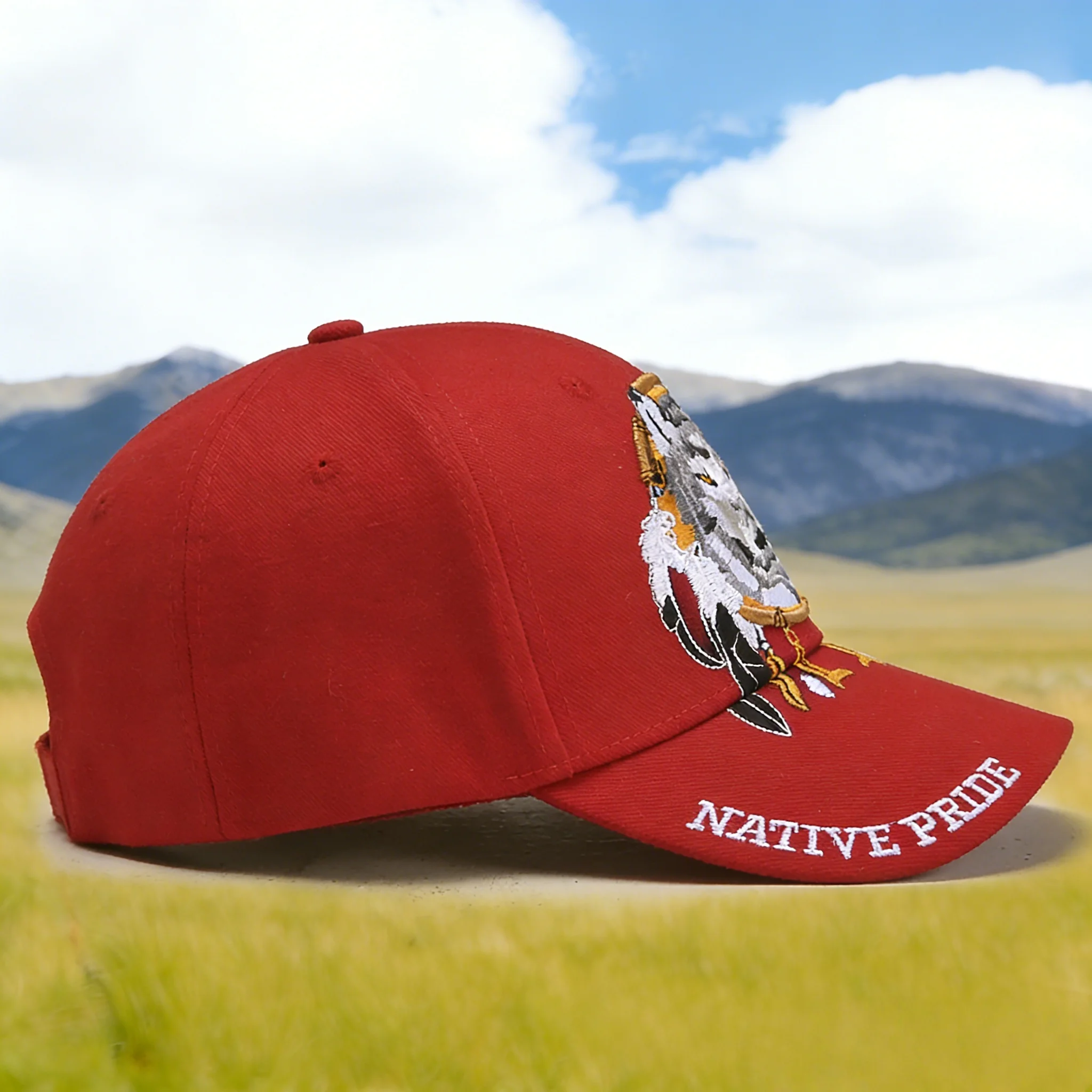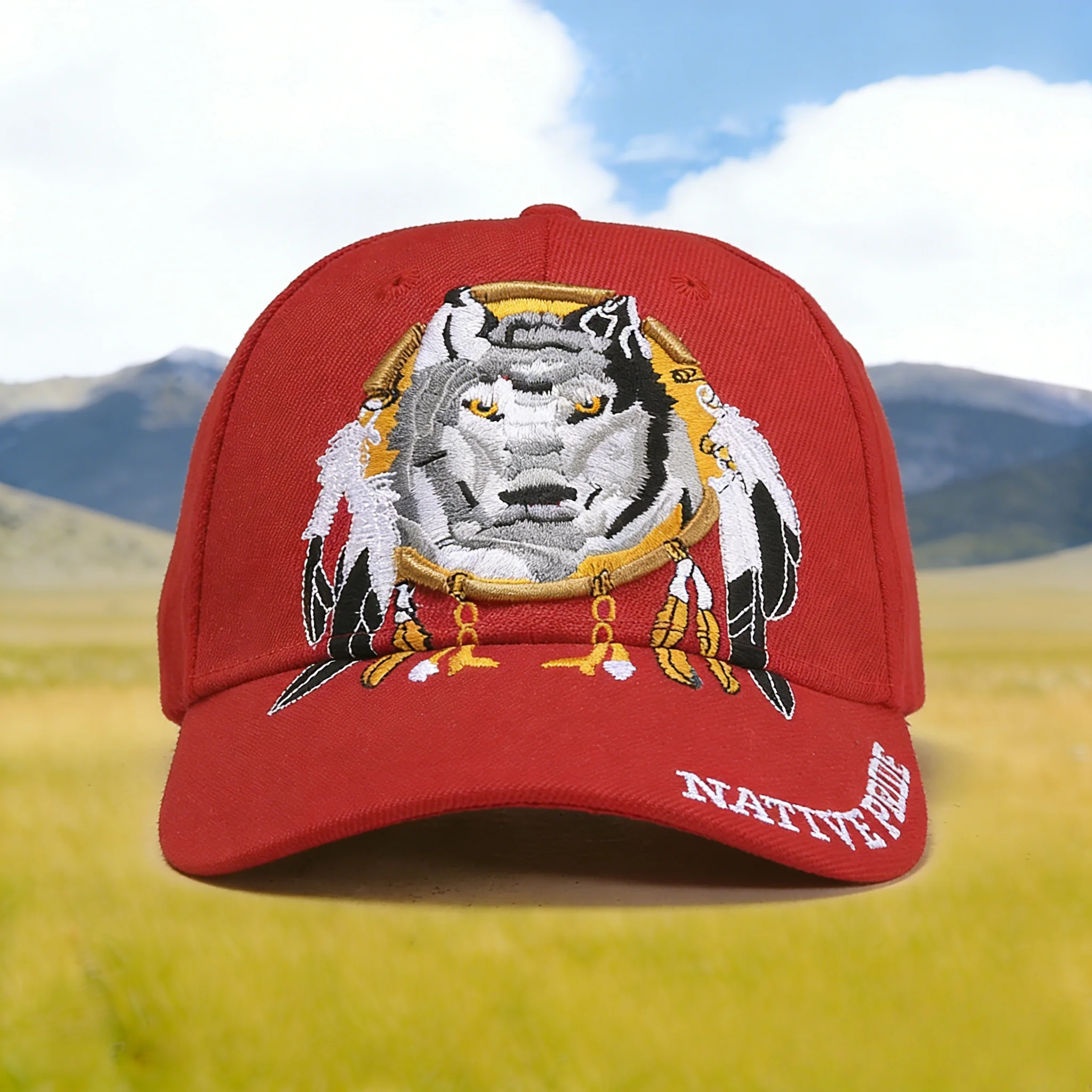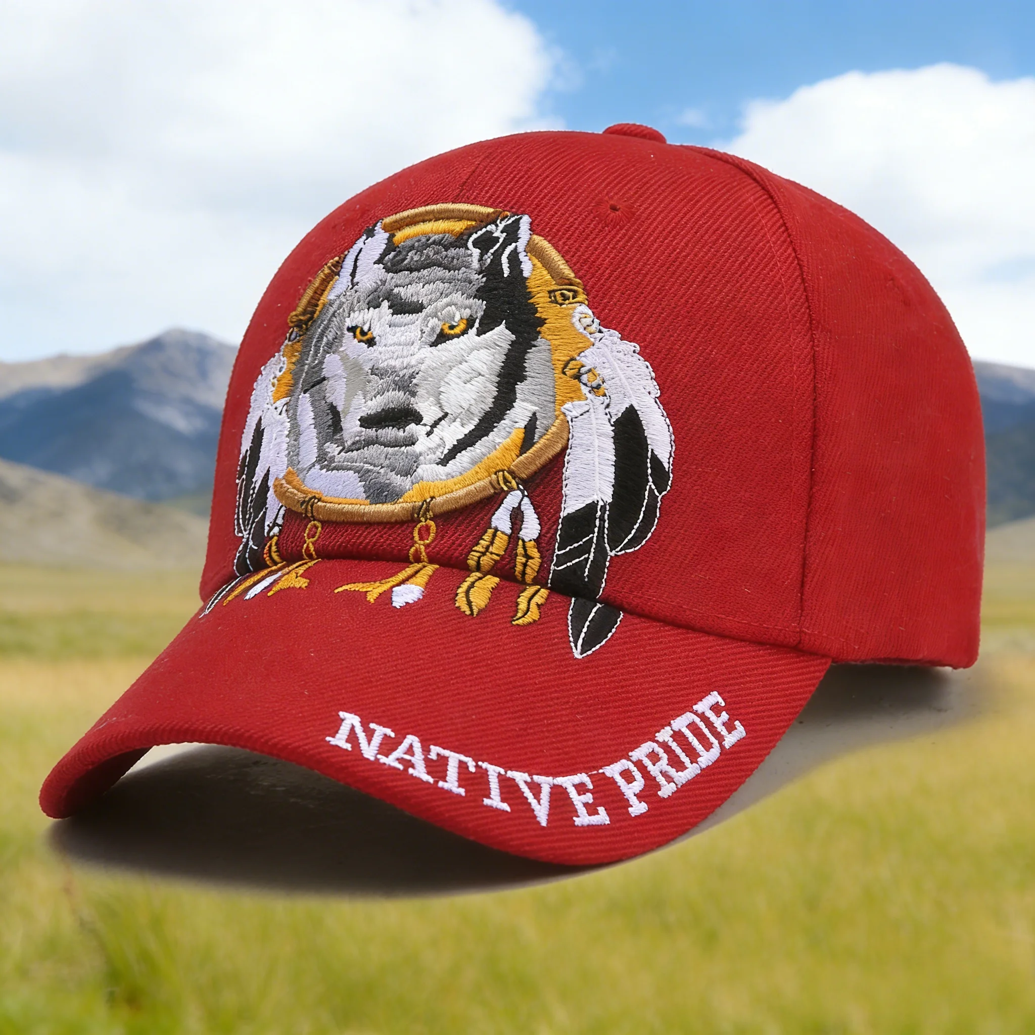 Stylish Baseball Cap with Native Pride Wolf Embroidery, Eye - catching Design, Perfect for Outdoor Adventures, Cultural Inspired