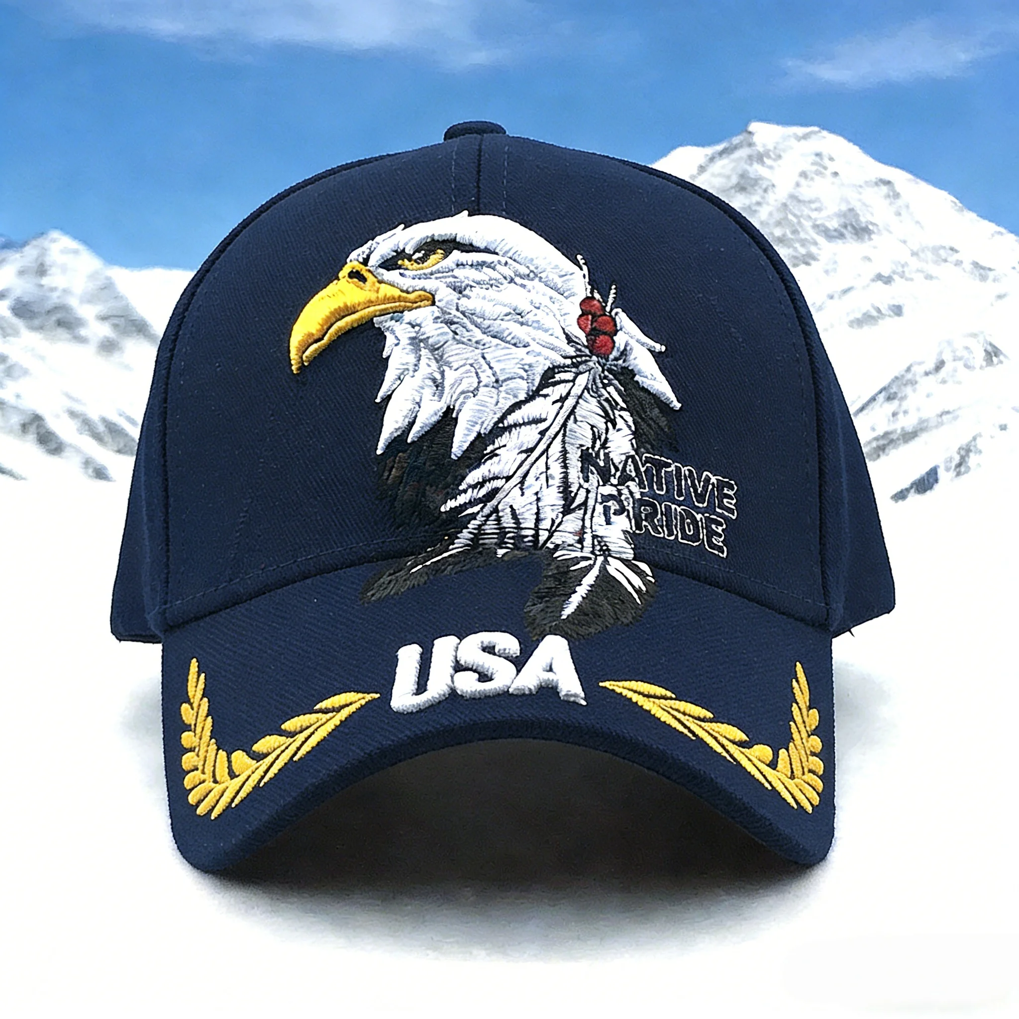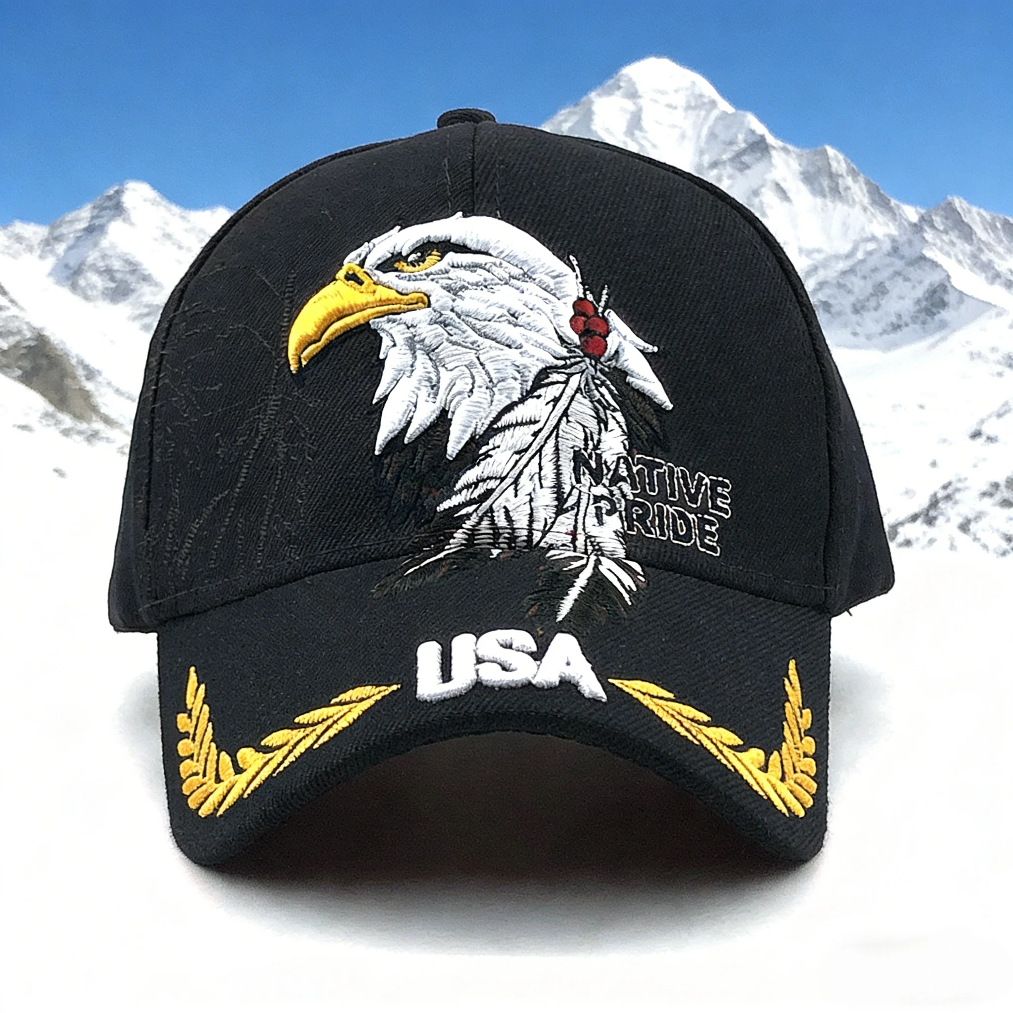 Stylish Baseball Cap with Embroidered Bald Eagle, "NATIVE PRIDE" & "USA" Design